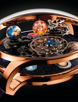 Hours, minutes, 60-second bi-axial flying tourbillon, 60-second rotating Earth.