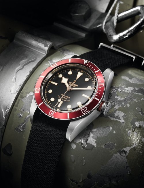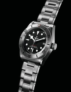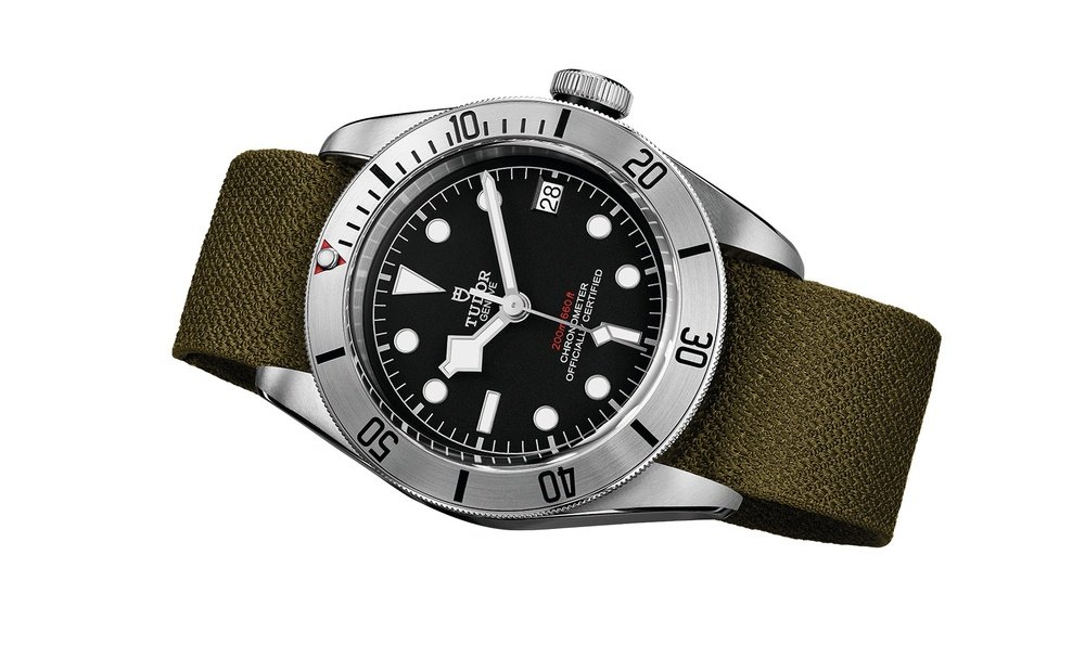 An emblematic model celebrating 60 years of Tudor’s acclaimed divers’ watches, this new execution, all in steel, enriches the Heritage Black Bay collection. Black Bay lines and proportions are retained, while the disc of the rotating bezel is machined from steel then circular satin-brushed for a matt appearance and a highly functional overall effect. The in-house MT5612 calibre is a high-performance movement that delivers superb precision as well as a 70-hour power reserve. This is also the first time a date function has featured in the Black Bay collection. The bracelet revives the visible rivet heads attaching the links along the sides, and the distinct stepped construction of the 1950s and 60s. Also proposed on a leather strap, both versions are delivered with a second khaki green fabric strap that is woven on a traditional Jacquard loom.