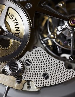 Black rhodium-plated nickel silver, satin-brushed by hand. “CHRONOMÈTRE VAL-DE-TRAVERS SUISSE” inscription