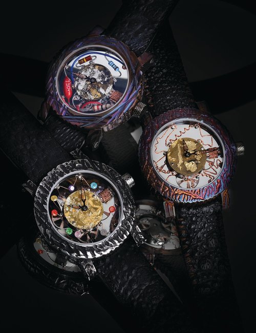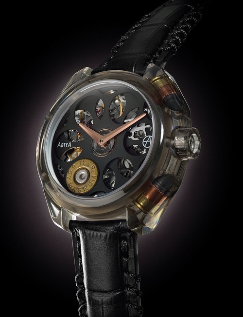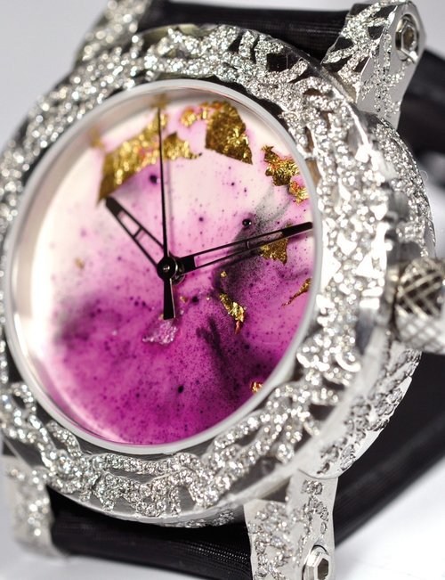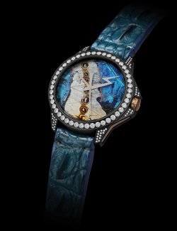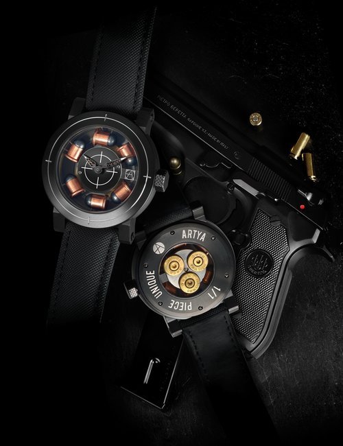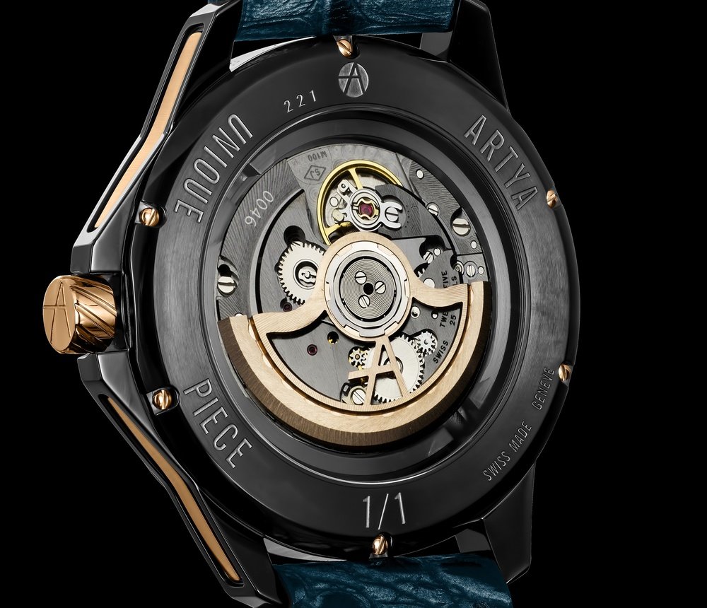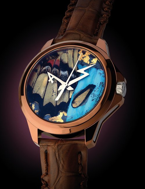ArtyA has developed its own COSC-certified movement “ArtyA Aion”, to be used in its Son of Earth, Son of a Gun and Son of Art collections. The chronometer-rated automatic movement features a rose gold rotor and finishes that include côtes de Genève, spotting and snailing. The ArtyA Aion movement is used in the new Son of Earth Butterfly watch, which is now available with Top Wesselton VVSI diamonds set into the bezel, lugs & crown, within a special black case. The dials in this collection are made with real butterfly wings combined with gold leaf. Each dial is one-of-a-kind, because each butterfly is one-of-a-kind. The 316L stainless steel or black PVD case has inserts made of ArtyOr, the company’s proprietary gold alloy.