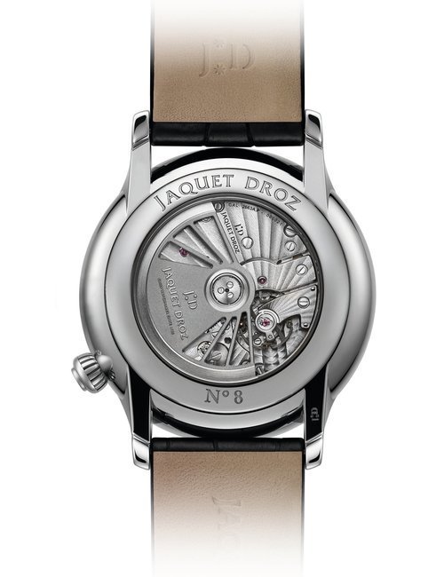 Mechanical automatic Jaquet Droz 2660QL3 Calibre, 28,800 vib/h (4 Hz), 30 jewels, 18k gold rotor, silicon balance spring and pallet horns, double barrel, flat bridges, 68-hour power reserve.