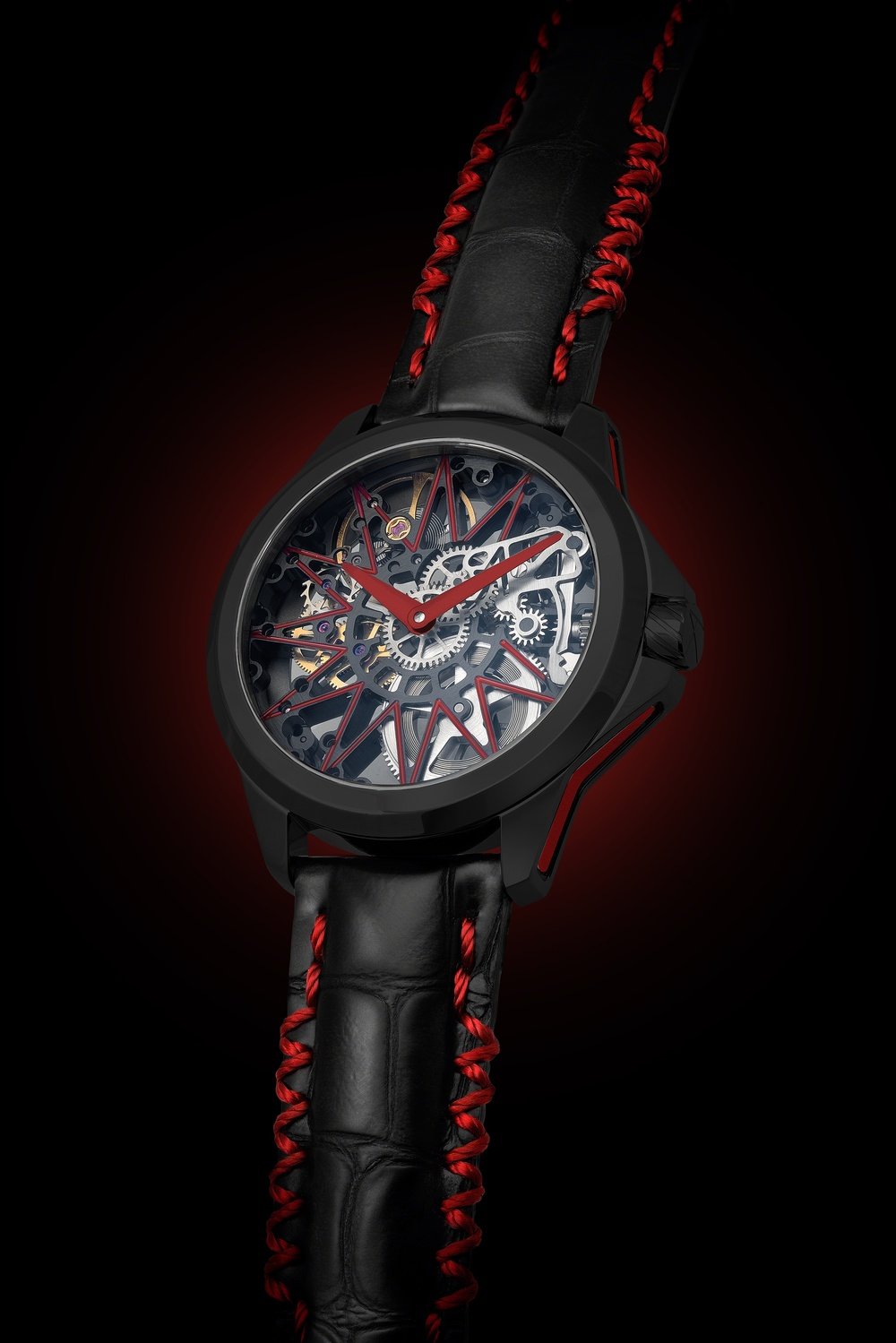 The openworked movement on this watch is designed to represent the 10 rays of the star, with the colour matching the lateral inserts of the case and the stitching on the leather strap. A wide choice of colour options is available, but ArtyA will limit production to 99 pieces in each colour. There are five versions of the watch, depending on colour, case options and even a diamond-set option, in limited editions or unique pieces. ArtyA has been making openworked watches since 2009. This is the second in a series using the same movement, a modified Unitas calibre. The first was Shams, which means “sun” in Arabic, launched in 2015. The new one is based on a star motif, keeping with the heavenly bodies theme. The 3rd is an Edelweiss in a tonneau case, to discover at Booth L62 Hall 1.1 Les Ateliers.