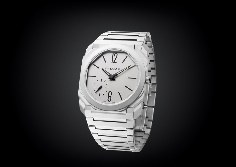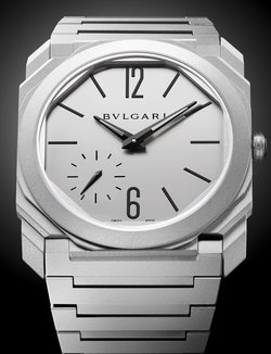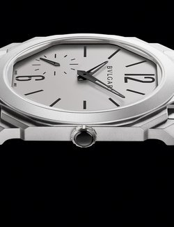 The Octo Finissimo, with the world’s thinnest automatic movement, is now available in a subtle, sandblasted finish over steel that enhances the modern elegance of its design. The sandblasting technique tone-down the gleam of the metal with a matt-style approach, giving the rhodium-plated steel version an elegant, silky shimmer. The finish is also applied to the bracelet links, which are as supple as leather, and taper in size from the 40 mm case to the clasp. The Octo Finissimo Automatic, already a cult favorite, is driven by the world’s thinnest automatic movement, the Bulgari BVL Calibre 138 Finissimo.