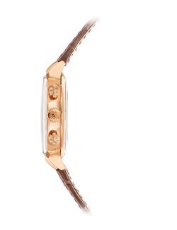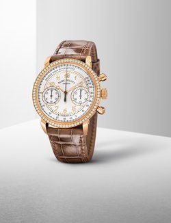For almost ten years, Patek Philippe has been offering women timepieces that are both elegant and striking – high quality chronographs with a classic architecture, featuring a column-wheel and horizontal coupling. Today, the Geneva manufacture unveils a new addition to its collection, the 7150/250R chronograph. Its once cushion-shaped case has been redesigned and is now round, in 18-carat rose gold, graced with 72 diamonds set into the bezel. The silvered opaline dial subtly evokes a vintage spirit that is understated and timeless. At once contemporary and classic, this timepiece features hours, minutes, 30-minute counters, small seconds and chronograph functions, all powered by the CH 29-535 PS caliber, a hand-wound mechanical movement. In homage to the tradition of classic chronographs, Patek Philippe has endowed its timepiece with a pulsometric scale that can measure the rhythms of an active life or the beating of the wearer’s heart.