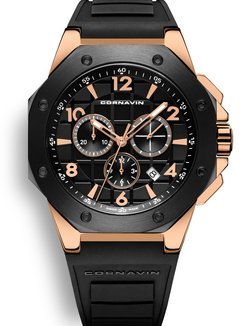 Inspired by the city of Geneva, the Cornavin Downtown Sport collection has been carefully created focusing on the finest details and using only the highest quality parts. The exceptional design of the Downtown Sport case gave rise to some of Cornavin’s most popular models. The robust 44.5 mm octagonal case is enhanced with 8 decorative screws on the bezel. All Cornavin timepieces in this collection are equipped with sapphire crystal, screw-in crown, and screwed case back. This collection offers a wide variety of options; from classic 316L Stainless Steel cases to rose gold or black PVD-coating. The watches in this unique collection are paired with long-lasting, comfortable rubber straps or elegant calf leather straps with ardillon buckles. Selected models in the Cornavin Downtown Sport collection are limited to 999 pieces and are individually numbered on the case back.