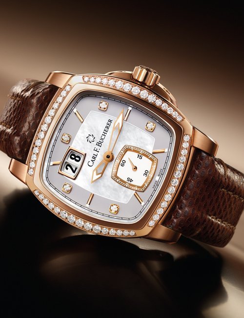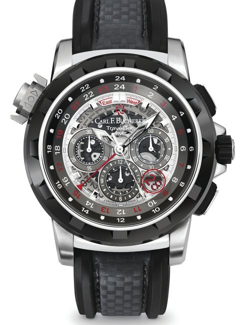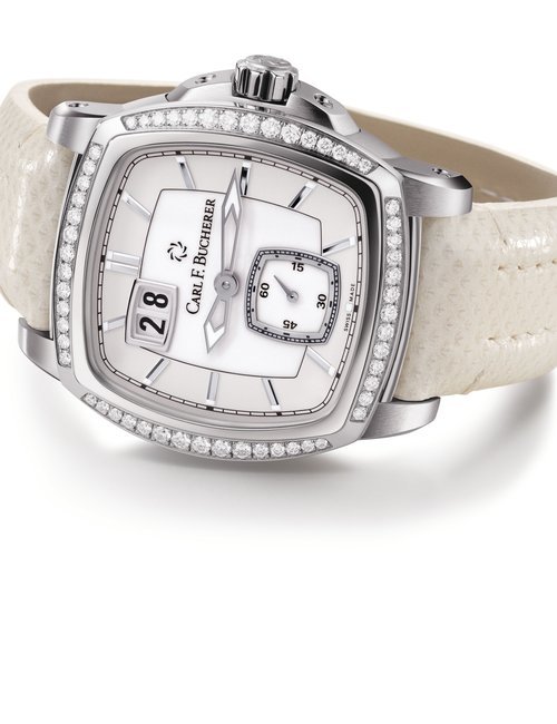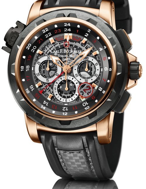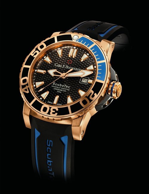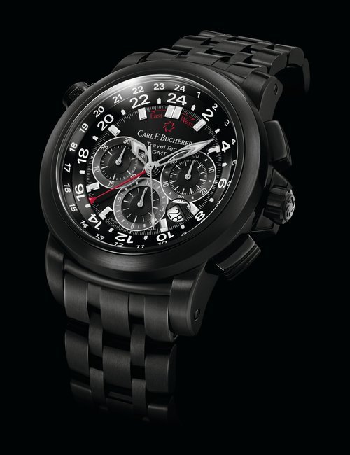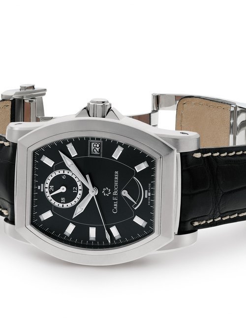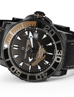 The remarkable 500-metre water resistance of this watch means you can swim with the manta rays that inspired it. And in order to ensure there will be plenty of the gentle sea creatures to swim with, part of the proceeds from its sale will be donated to the Manta Trust charity. The trust leads global research projects and awareness campaigns to help preserve this endangered species. Carl F. Bucherer’s contribution is specifically earmarked for research on the manta ray’s movement patterns. The ultra-light titanium case is coated with black DLC, and includes a helium release valve. Two silhouettes of manta rays adorn the centre of the black dial, framed by indexes covered in Super-LumiNova, framed by a unidirectional bezel made of tough titanium and ceramic. The automatic movement, calibre 1950.1 is COSC certified.