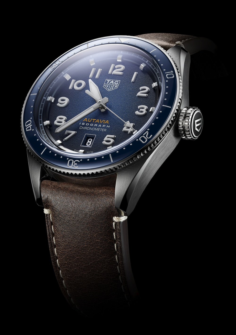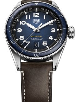 Inspired by the original Autavia wristwatches and dashboard timers of the 1960s, that was used in racing cars and aircraft, the new Autavia collection bring together functional, versatile style and cutting-edge technology. Each Autavia watch is equipped with TAG Heuer’s proprietary carbon-composite hairspring, “Isograph”. The name Autavia comes from the combination of automobile and aviation. Every new TAG Heuer Autavia has a propeller and tire etched into the caseback in commemoration of this. The bevelled lugs and the name echo those of the original, but the watch contains a state-of-the-art movement, with an isograph carbon-composite hairspring, and a tough, scratch-resistant ceramic bezel. The brown leather strap is interchangeable, with a stainless steel bracelet option available.