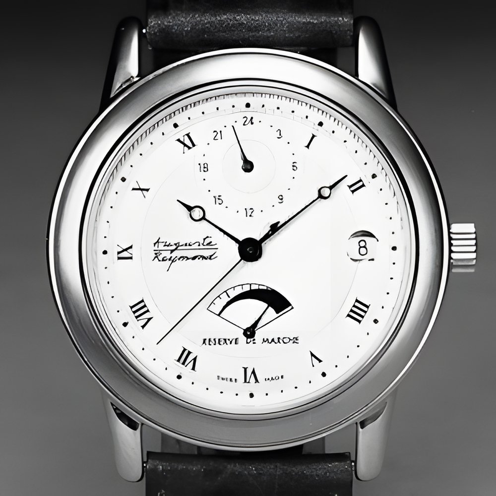 The Auguste Reymond “Jazz” collection now includes a new entry, “Ragtime”, available in a choice of three selfwinding versions : regulator, universal time and power reserve. Pictured here is the latter version; along with a power-reserve indicator (mainspring tension gauge), it includes a subdial with 2k-hour divisions that can be set to a second time-zone. Case in 10-micron goldplate, water-resistant to 30 m, featuring a transparent back revealing the movement. (AUGUSTE REYMOND “Ragtime” Power Reserve)