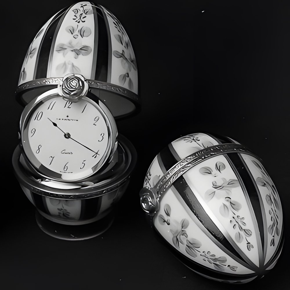 Egg, “Pompadour” case and drum - these precious collectibles are all designed by Laugerotte, master clockmaker.ed by Laugerotte, master ciockmaker. They are fashioned in hand-painted Limoges china, decorated with flowers and gold trim, and feature a periodstyle metal brace and clasp. Fitted with a Swiss quartz movements; for the Auvergne Royal Guard drum, the watch replaces the drumhead. (LAUGEROTTE, (lattre Pendulier, Les Breuleux)