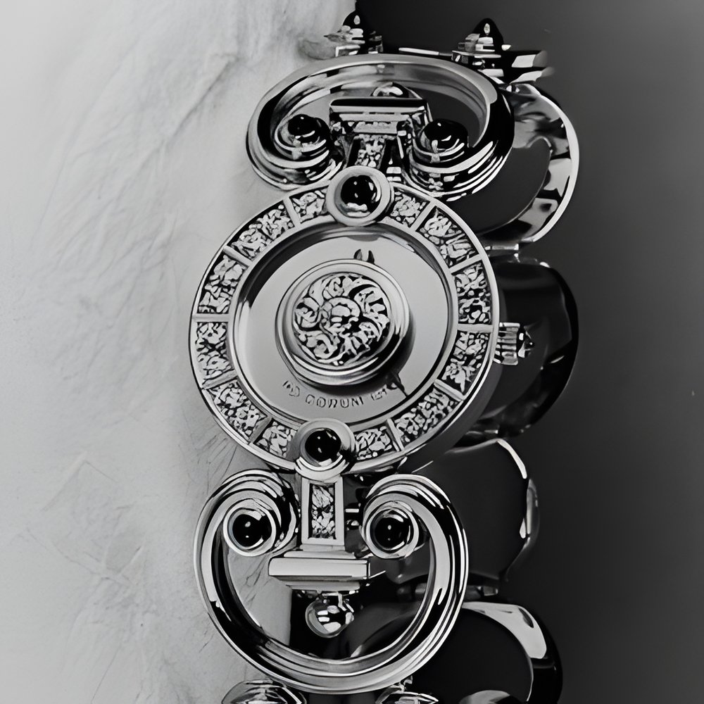 This jewellery watch’s bracelet styling recalls the wrought-iron intricacies of the Mirabeau bridge in Paris, so often sung by the city’s poets. In solid 18K gold, with diamond-tipped crown. Variants are also available, set with 24 diamonds (1.3 cts), or 2 diamonds (2.3 cts) and 18 sapphire cabochons (3.1k cts). Quartz movement. (CORUM “Mirabeau”)