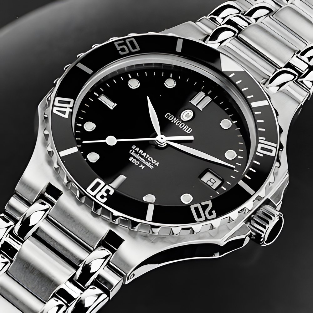 The Saratoga collection, whose models doubtless rank among Concord’s most strongly profiled designs, now includes the “Saratoga Diver” for men. Its steel case, rotating bezel, sapphire crystal and water-resistance I to 200 m contribute to the model’s appeal amoung undersea specialists. (CONCORD “Saratoga Diver”)