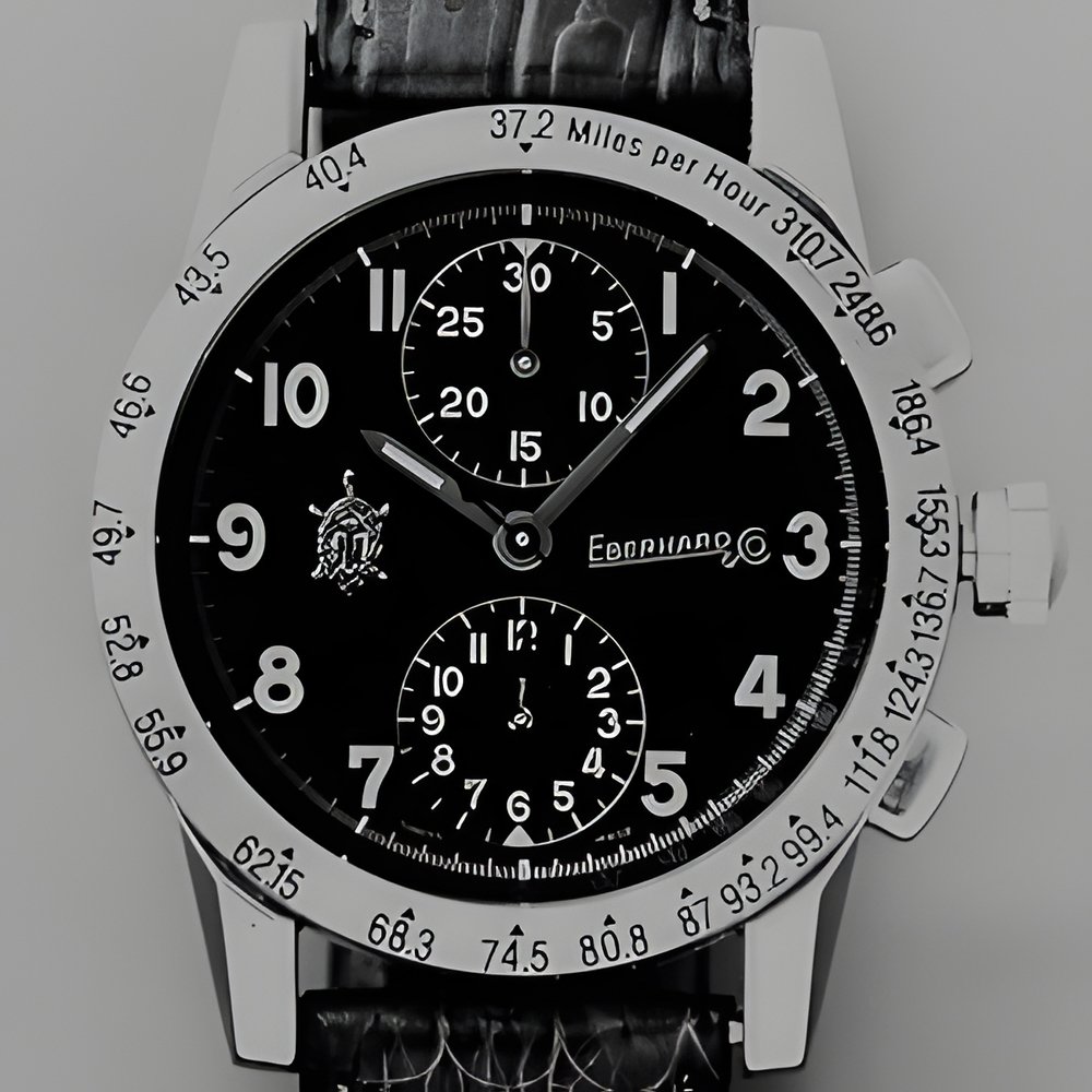 Eberhard dedicates this mechanical chronograph to lazio Nuvolari, one of the all-time greats of automobile racing. His signature is engraved on the case back and his Golden Tortoise symbol is proudly inscribed on the dial. The lazio Nuvolari chronograph comes with an official chronometer certificate and is water-resistant down to 30 m. The chronometer’s styling is reminiscent of the racing-car instrument panels of the time, with their accent on precision reliability, resistance to the elements and legibility. The finish of both the case back and the bezel recalls the structure of the cylinder heads of the period. (EBERHARD “lazio Nuvolari”)