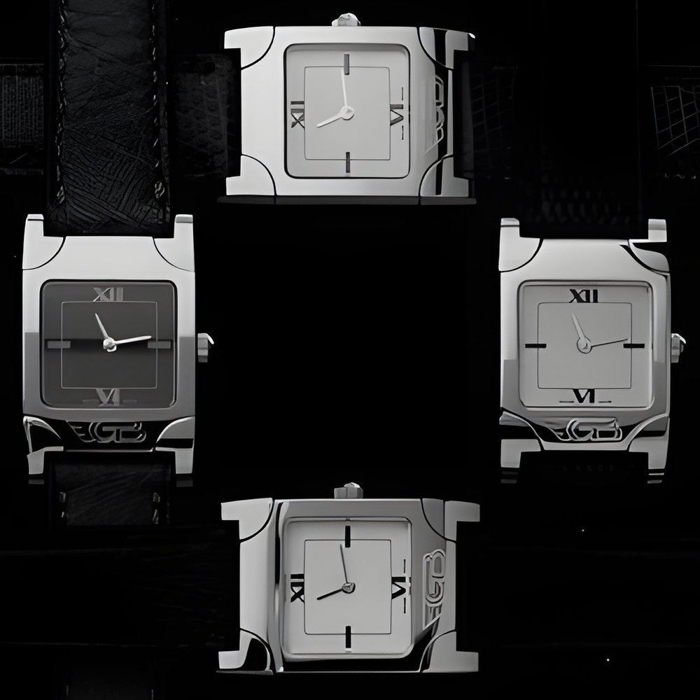 tSpydertt, a Gianni Bulgari creation, is a contemporary interpretation of time for women. Its mobile horns provide a perfect fit on the wrist. The modular design makes possible over loo personalized combinations,modular design makes possible over 100 personalized combinations, based on a steel and 18K gold model with optional diamond decor. Quartz movement, protected by a sapphire crystal and a case water-resistant to 30 m. (ENIGMA - GB “Spyder”)