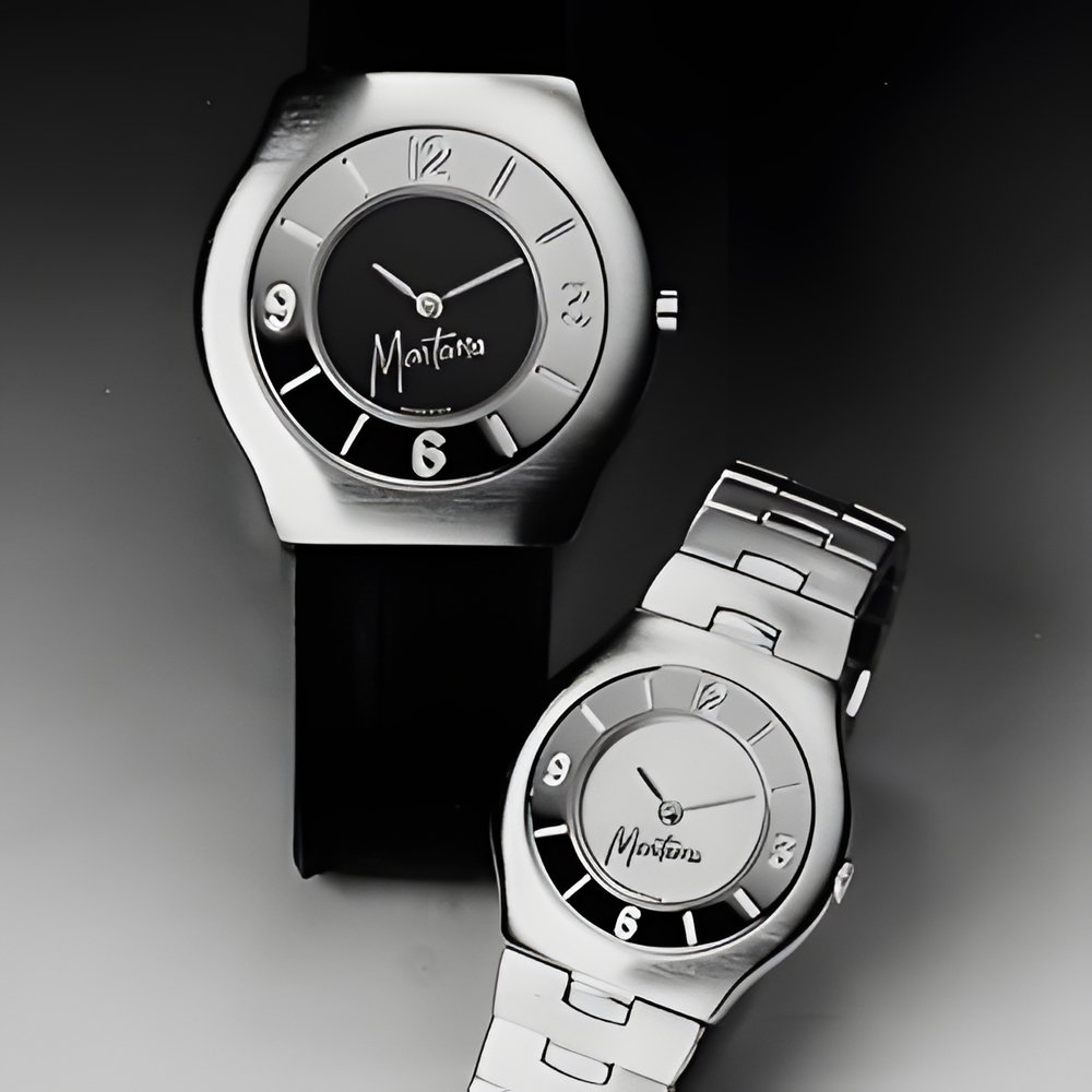 Understated in spirit, eternally classic of line, these wristwatches make the most of their sweeping silhouette and first-class materials. In 18K gold, fitted with a genuine alligator strap with deployment buckle, they are equipped with a quartz movement and a scratch-resistant saphhire crystal. Their polished bezel, engraved with twelve hour markers, provides this very contemporary collection with a distinctive signature. Every watch is engraved with a consecutive production number and features a Montana medallion-die-struck on the case back. (Sodihor SA - MONTANA)