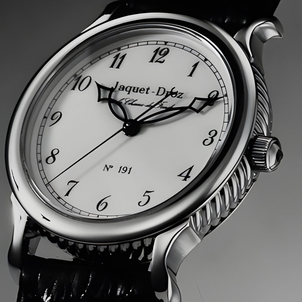 Jaquet-Droz : from distinguished name to distinctive make. This wristwatch marks the first design in a collection saluting its founder, Pierre Jaquet-Droz (1721-1790), one of the most inventive craftsmen of his day. Water-resistant, individually numbered, fashioned in 18K gold, it is equipped with a twin-barrelled selfwinding movement. Every detail is carefully designed and finished : blued steel hands with openworked lozenge tip, miniature motifs in the minute circle, case middle enhanced with rounded godroons and engraved case back. (JAQUET-DROZ)