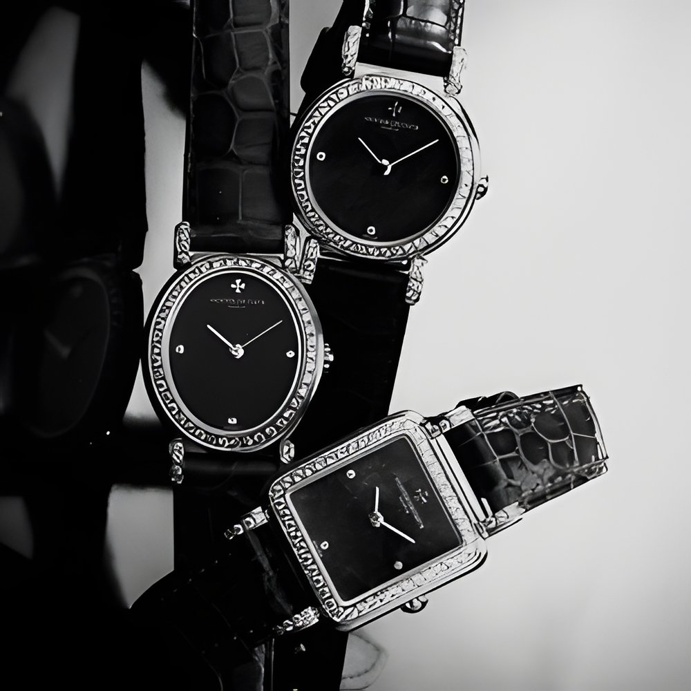 These graceful designs from the “Magellan” collection for women feature an 18K yellow gold case with a clear sapphire case back revealing the gleaming dance of their handwound mechanical movement. Dials are made of semi-precious stone, offering a choice of “veronese” green, “ultramarine” blue and “calcedony” red, set on a solid gold plate and enhanced with three diamonds. Colour-harmonised with the green, blue or red dial, straps are fitted with a deployment buckle. (VACHERON CONSTANTIN “Magellan”)