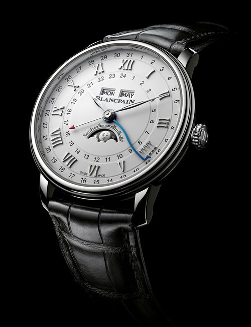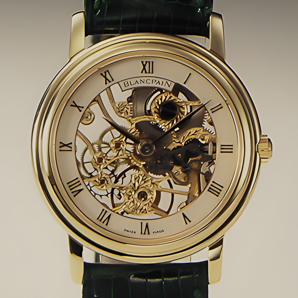 Blancpain presents a woman’s wristwatch with ultra-thin, “skeleton” type handwound movement. Only 1.73 mm thick and 20.40 mm across, it is elaborately openworked and chased by hand. Cold dial frame, case in 18K yellow gold. (BLANCPAIN)