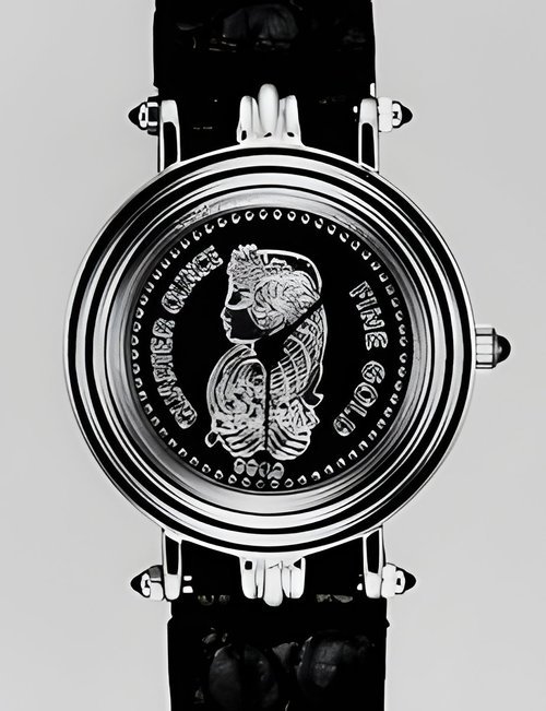 Prototype wristwatch developed by Pamp S.A., of Geneva, in tandem with a leading watch firm. It features an ingot of fine (24K) gold with decorative engraving. (PAMP S.A., Geneva)