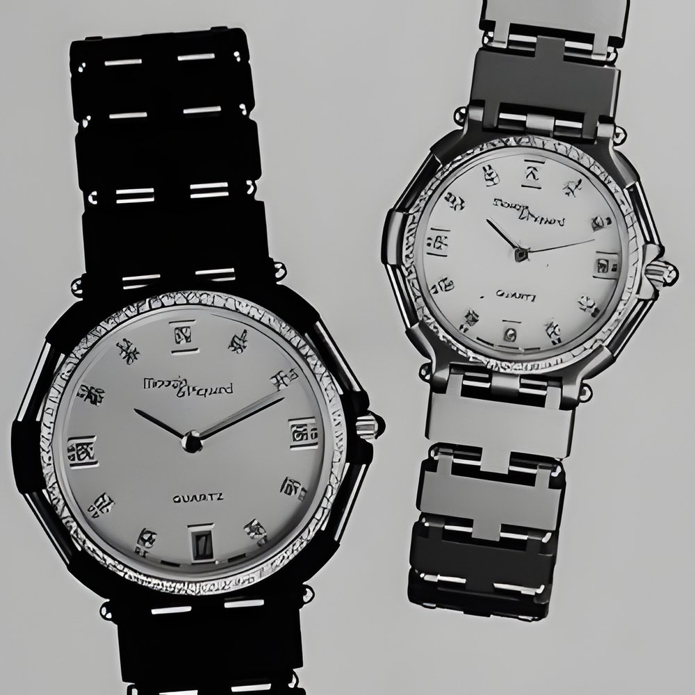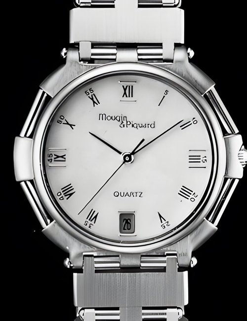 Three current fashion trends : sporty-stylish look, two-tone finish and extra-slim profile. These two Mougin & Piquard models are in black chrome and 18K yellow gold or in steel and yellow gold. The bezels are set with Top Wesselton VVSI diamonds. ETA Flatline III quartz movements. Water-resistant to a depth of 30 m. (MOUGIN & PIQUARD)