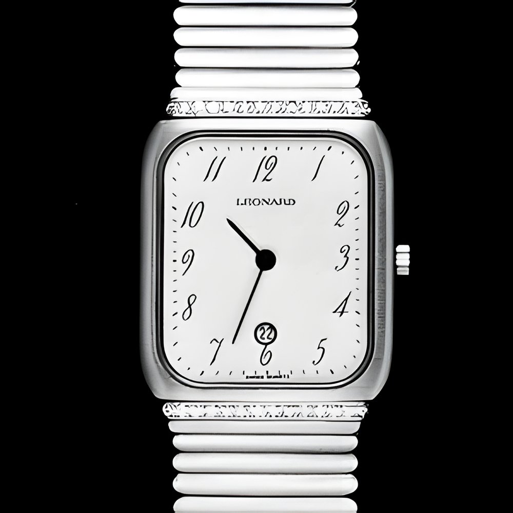 Wristwatch in satin-finished steel. Water-resistant case (to a depth of 30 metres). Very slim quartz movement. The bars linking the case to the bracelet are removable and interchangeable : in either goldplate, 18K gold or gold set with 18 brilliant-cut lop Wesselton VSI diamonds. (LEONARD)