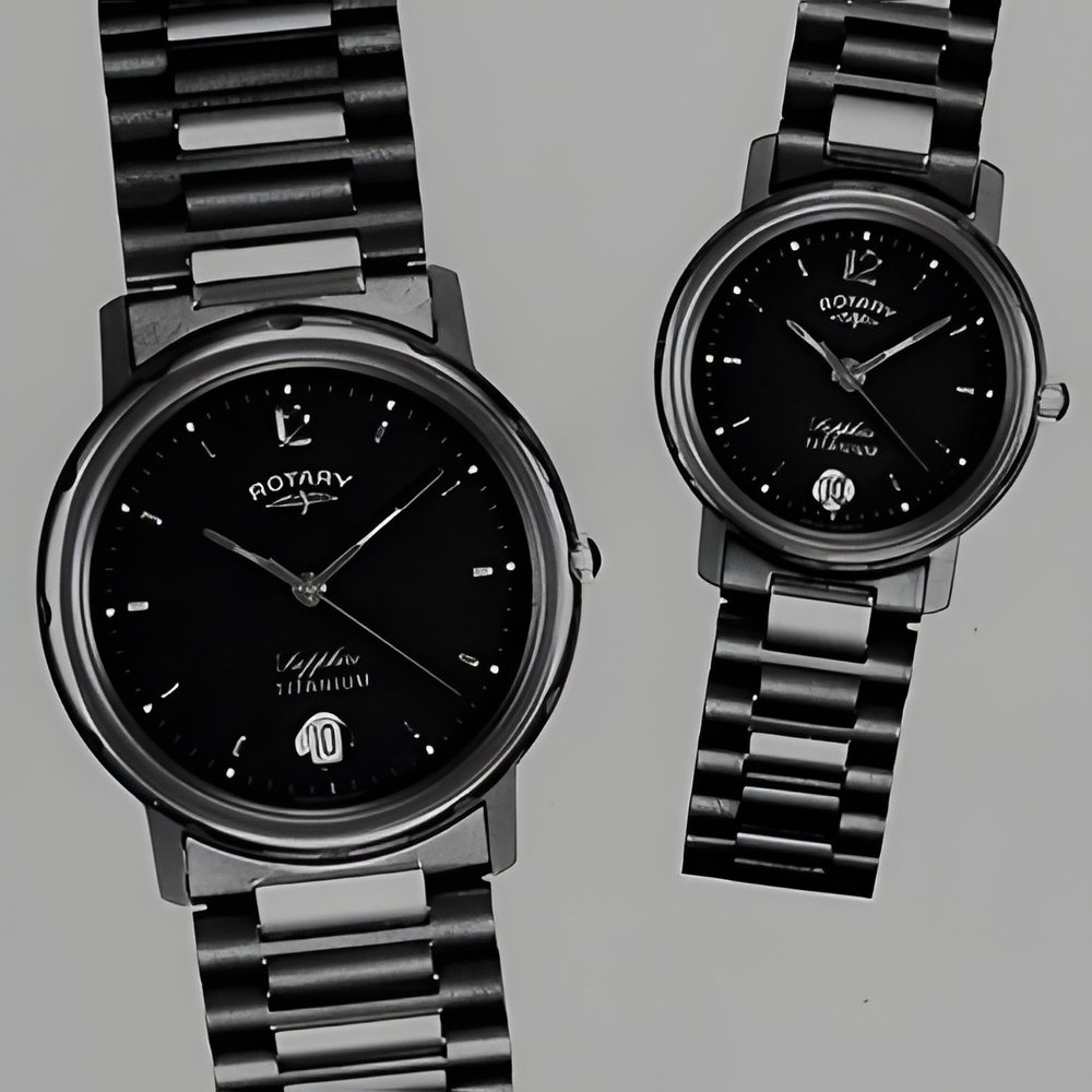 Both sapphire and titanium protect these sports watches for men and women. Two-tone titanium, very lightweight and corrosion-resistant, is used for the bracelets and the cases (water-resistant to a depth of 30 metres). Scratch-resistant sapphire crystals. Swiss-quality ETA quartz movements. (ROTARY)