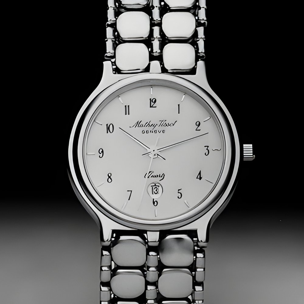 Founded in 1886, Mathey-Tissot celebrates this year its 100th anniversary. So here is its “Centennial” model: a very slim quartz watch with flexible bracelet made of multiple polished links, flawlessly wedded to the water-resistant case. 10 micron goldplate. Centre seconds. Calendar. (MATHEY-TISSOT)