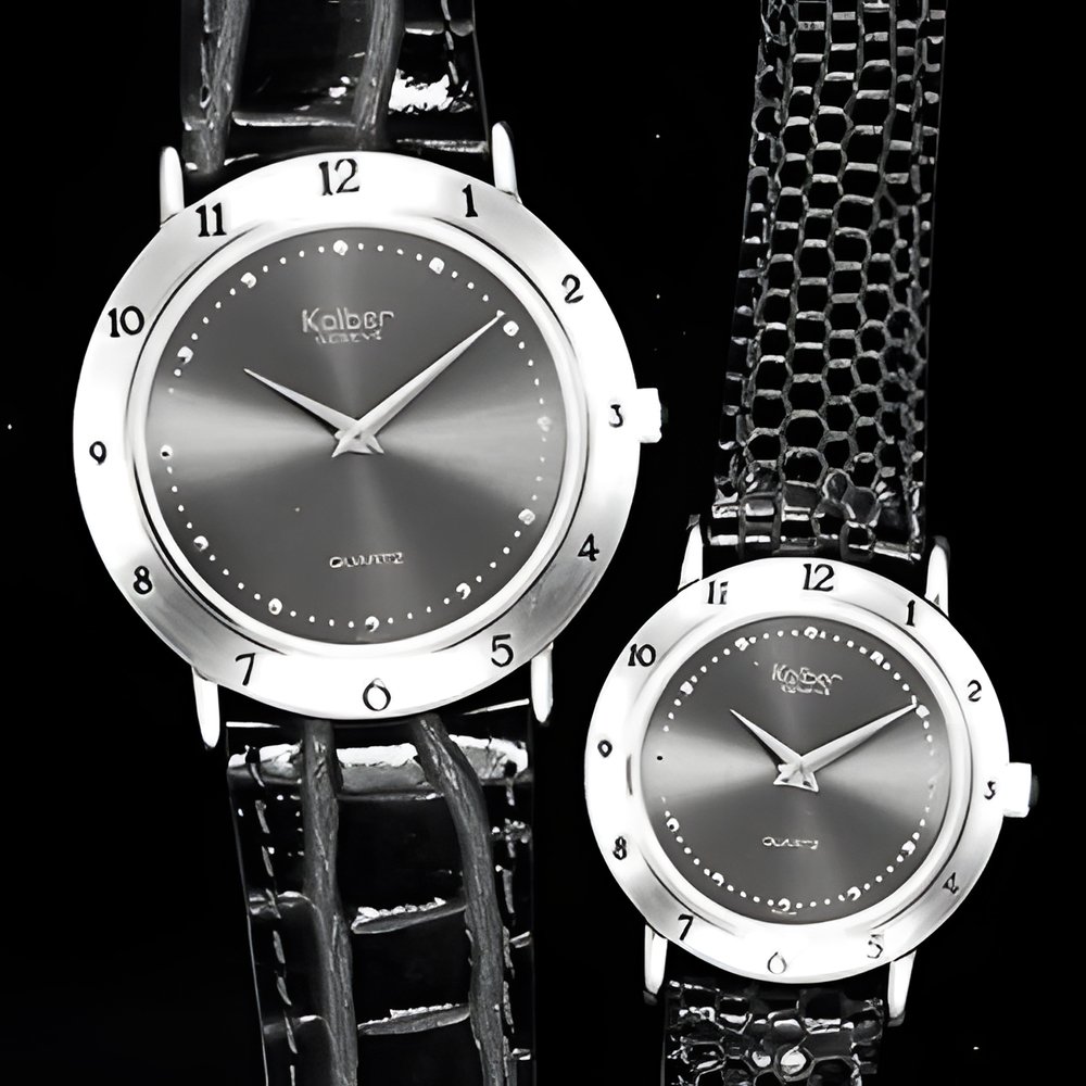 These very fashionable new designs are fitted with water-resistant cases in goldplate with hour circles engraved on the bezel. Ultra-thin quartz movements. (KOLBER)