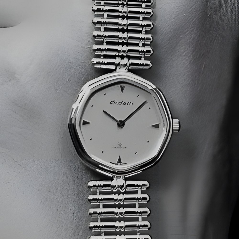 For sports and townwear, this octagonal watch features a waterresistant case in 10 micron goldplate, a champagne dial, a bracelet in steel and yellow goldplate, an extra-slim ETA Flatline quartz movement and a scratch-resistant sapphire crystal. (ARDATH-ALVERNA, Dreyfuss & Cie, Geneva - “Donc”)