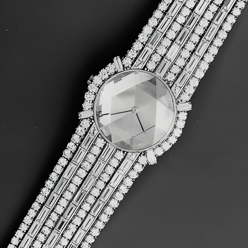 A sumptuous upmarket jewellery watch for men from Grald Genta. The “crystal” is made of a 11.19-carat diamond, while the bracelet is set with 36 carats of diamonds. (GERALD GENTA)