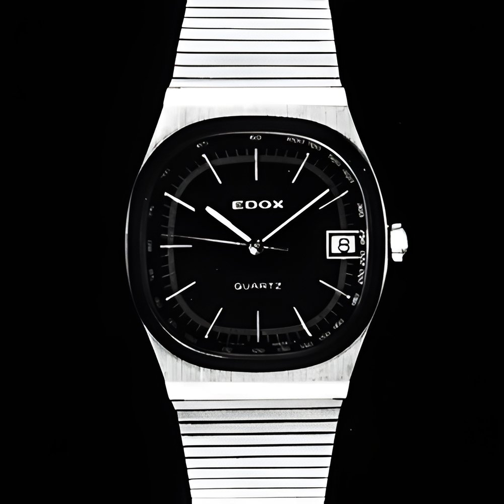 seconds and date. With all-steel case water-resistant to a depth of 30 m