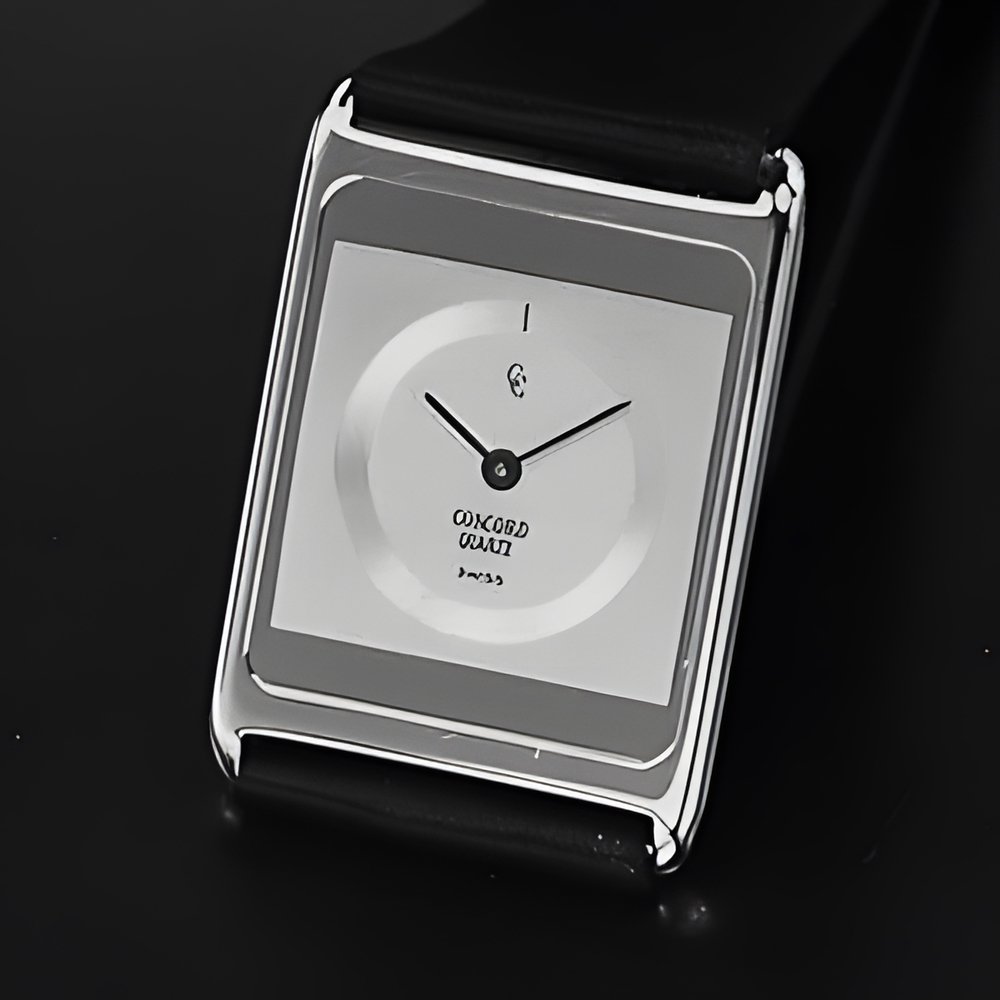 A new lady’s quartz design from the Concord-Delirium line (with fully integrated case, movement and dial) - total thickness is only 1.68 mm. Case and dial in 18K gold, satin strap with gold buckle. (CONCORD Delirium)
