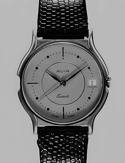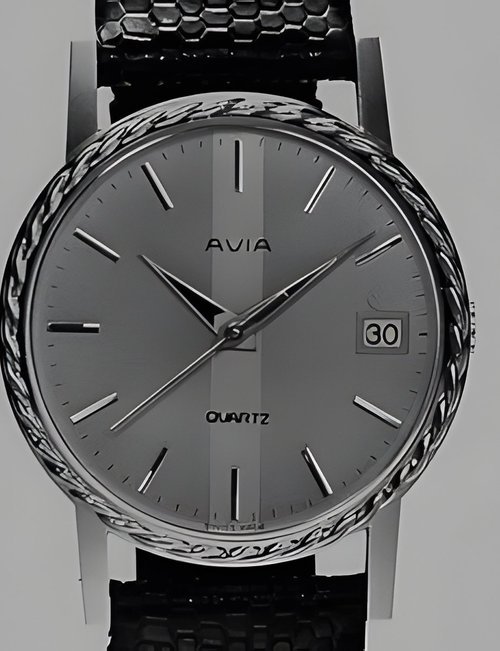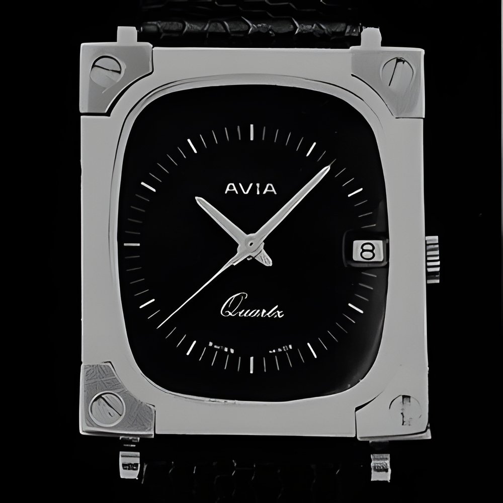 Styling - a vital aspect of successful marketing. Avia is this year presenting in Basle a collection built around exclusive designs. Shown here is the “Coffre” line featuring water-resistant cases with in-driven crown providing the same protection as the screwed-in type but a more elegant, less protruding look. Goidpiated or two-tone cases with functional screwed-on bezel. Mechanical or quartz movements. (SGT - Société des Garde-Temps - AVIA)