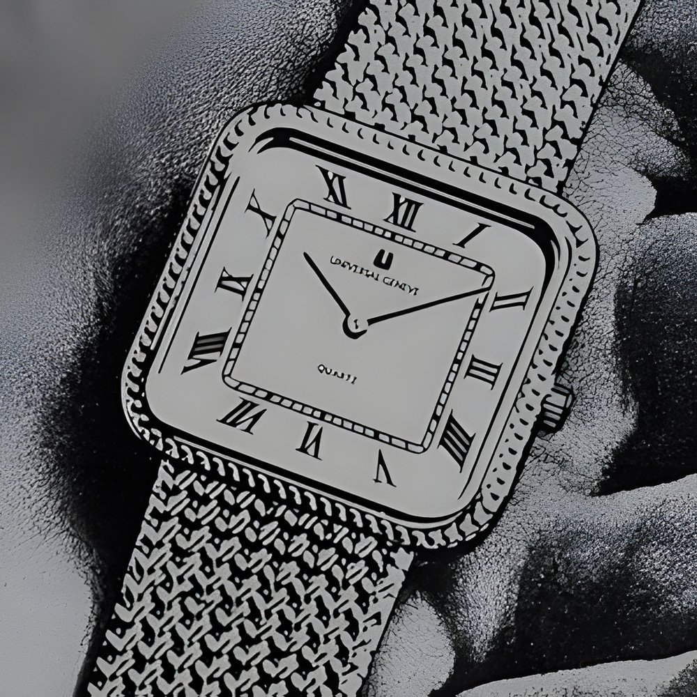 Universal Genève are introducing their “Venice” collection at the Basle Fair : a line of extra-thin men’s and ladies’ models featuring 18K gold, stainless steel or gold plated cases with gracefully rounded corners and fitted with a quartz movement (the recently developed Calibre 43). The new “Triple Seal” system provides reliable water-resistance protection.lBK gold bracelet or leather band. (UNIVERSAL GENEVE)