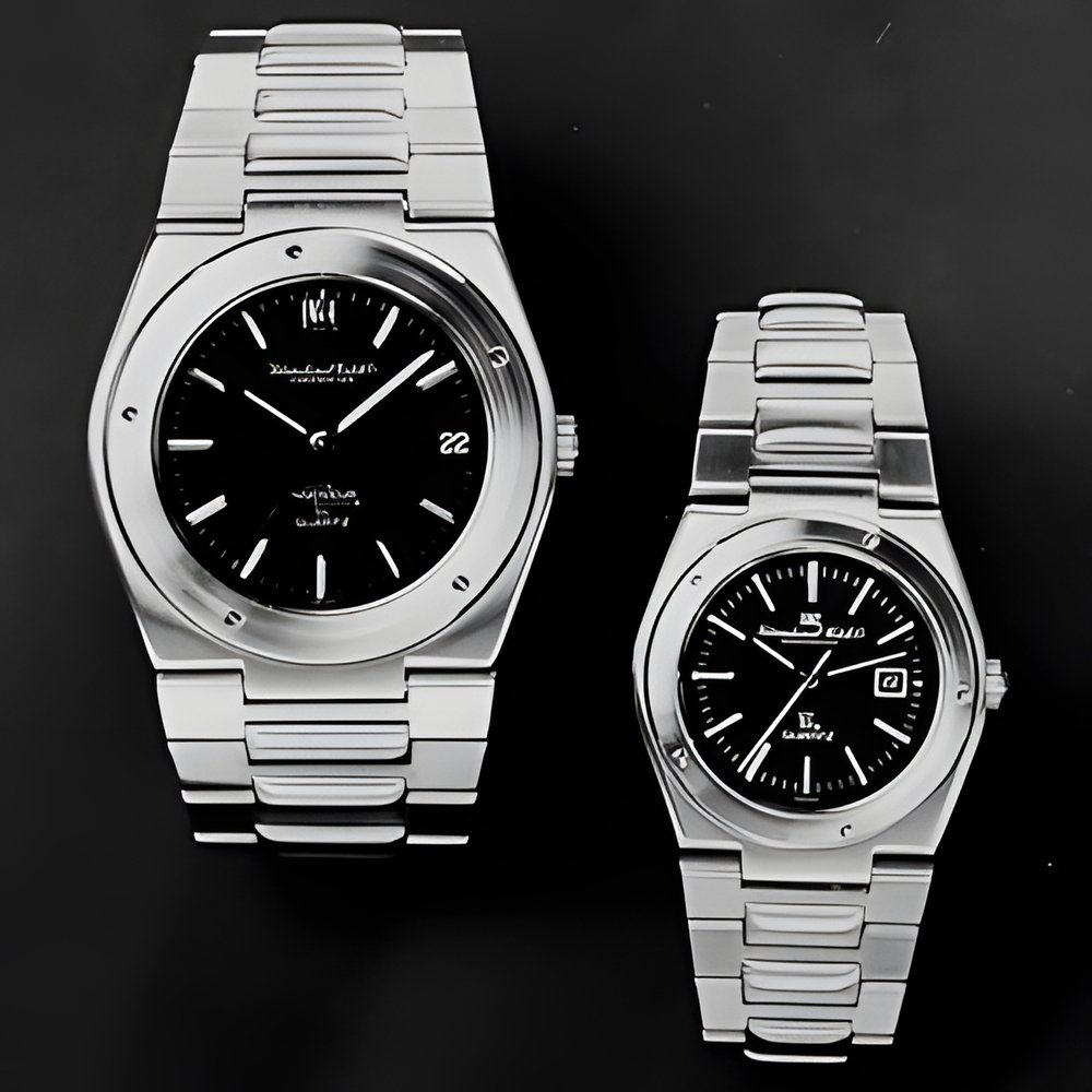 “Technical” styling does not in any way preclude handsome good looks : witness IWC’s Ingenieur SL and SL Quartz models. Protected against magnetic influences to 500 Oersted (40,000 ampere/m), both are also water-resistant to a depth of 120 m and fitted with a special shock-protection system. All steel, 14K gold-and-steel or 18K gold cases. Very thin quartz movement, scratch-resistant and glareproof mineral crystal. (IWC - International Watch Co., Schaffhausen Ingenieur SL et SL Quartz)