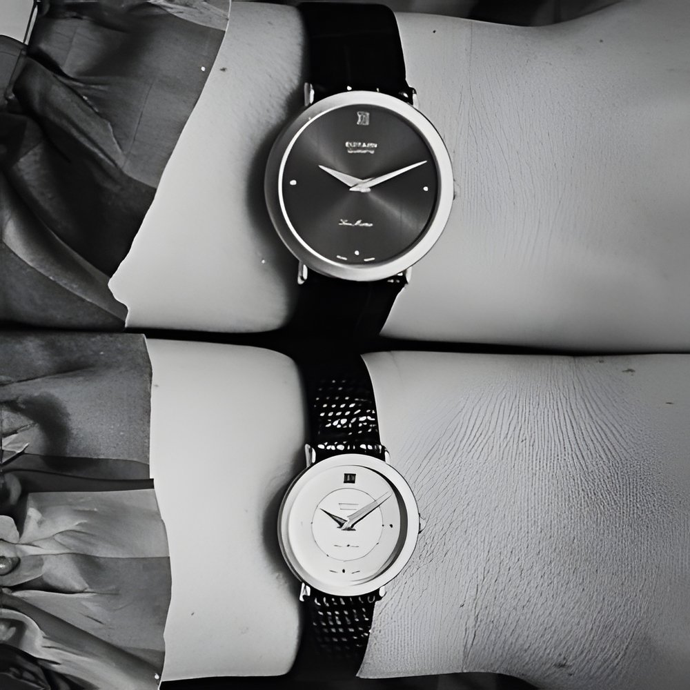 Serene styling featuring broad dials rimmed with slim, matte-finished bezels enhances these His and Hers models. Hers’ slim cases are bevelled to make them look slimmer still. Flat mineral crystal. With quartz movement. (ROTARY “San Marco” Collection)