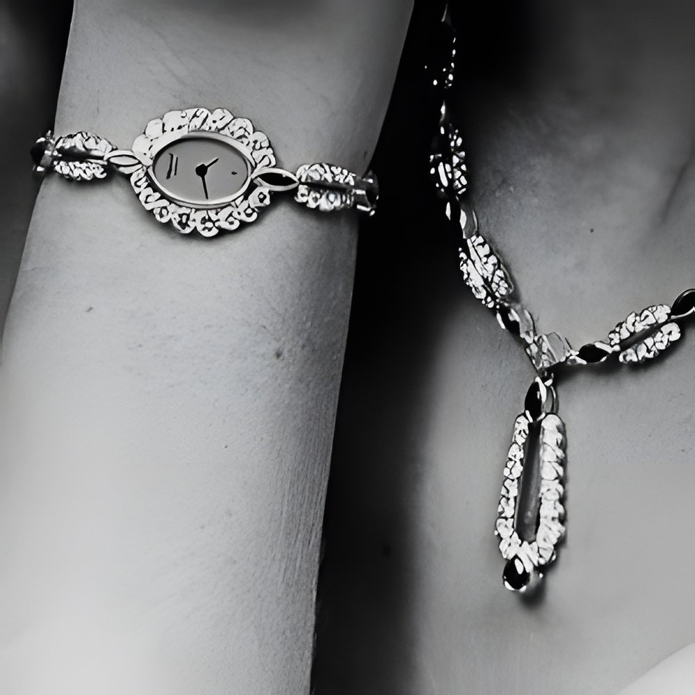 This luxury jewellery set comprising a wristwatch, ear pendants and a necklace, contains over 400 gemstones. Each piece is entirely set with brilliant-cut and square-cut diamonds along with navette-cut rubies and emeralds. The necklace and pendants feature a ruby teardrop. Yellow gold setting-The watch contains a very compact quartz movement. (CHOPARD GENEVE)