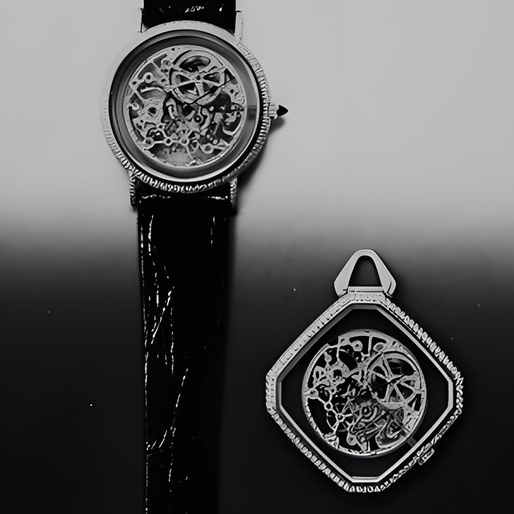 Two prestige designs : a jewellery wristwatch and an eight-sided pocket watch, both with “skeleton” type openworked movements fitted in transparent sapphire rings. Brilliant-cut diamonds are set into the rim of their 18K yellow gold case. (GIRARD-PERREGAUX)