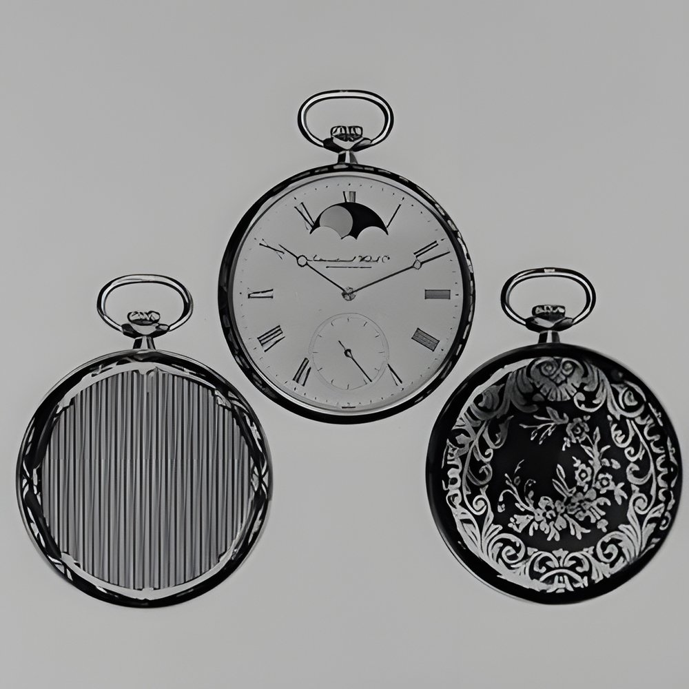 After a half-century of neglect, the niello-worked watch case is back in the spotlight. IWC has rediscovered the art of niello - an alloy of silver, copper, lead, sulphur and borax incrusted in gold or silver. This decorative technique is here used on a lepine watch. (IWC International Watch Co., Schaffhausen)