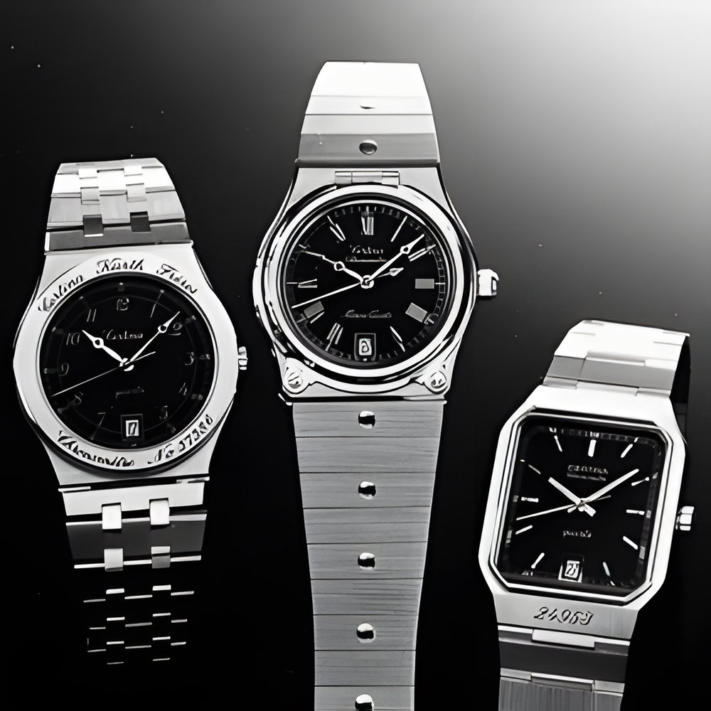 Quality, accuracy, reliability - the key words for Certina’s “quartz chronometers”. Each is individually tested and inspected for 13 days by an official body (COSE). Left and centre: two Marine-type designs in steel and goldplate; right: an extra-thin “Newport” model, in steel or two-toned. All are water-resistant and feature a scratch-resistant sapphire crystal. (CERTINA “Quartz Chronometers”)