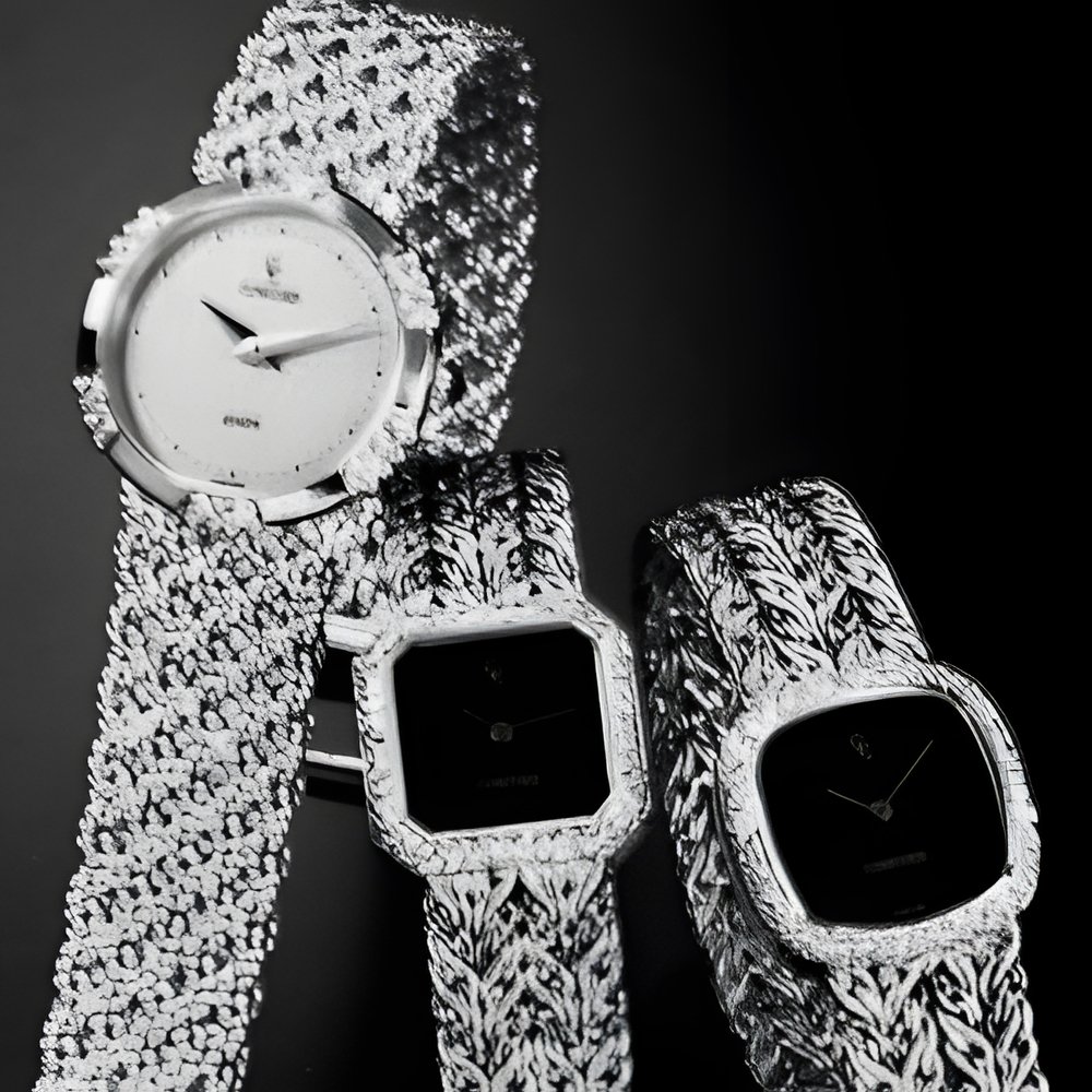 This year in Basle, Concord is introducing a new collection based on a recently designed, very compact (51/2") and extra-thin (1.80 mm) quartz movement. Graceful, utterly feminine and extremely accurate its rate variation is within 5 seconds a month. (CONCORD)
