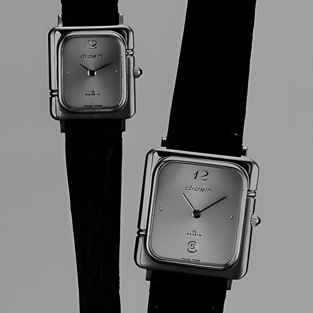 Clean lines and asymmetric bezel decor; similar asymmetric two-tone designs in yellow goldplate & steel, yellow goldplate & pink goldplate and yellow goldplate & black chrome. Extra-slim water-resistant cases, Eta Flatline III quartz movements. (ARDATH “Harmonie”)