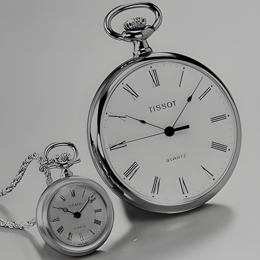 The pocket watch revival is in full swing - as these two quartz models demonstrate in style. For women, ,a pendant watch with neckchain and very slim two-tone case. The model for men features centre seconds, a fast-action timezone changer and electronic resetting of the minute hand. Goldplated case. (TISSOT)