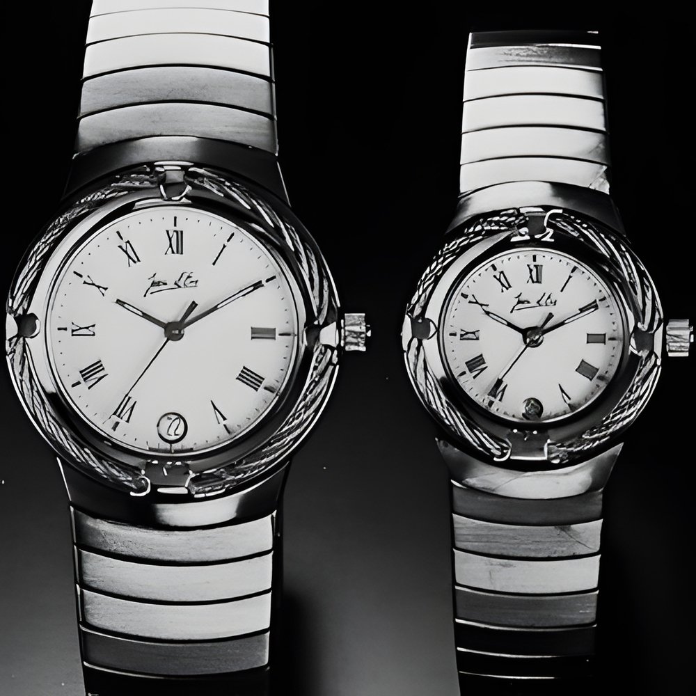 New “Jean d’Eve” models with attractively original styling very representative of today’s watch fashions : bezels feature a fine steel-cable decor while rounded half-moon links form their all-steel bracelet. With water-resistant cases and quartz movements with calendar and centre seconds. (JEAN D’EVE by LE PHARE-SULTANA SA)
