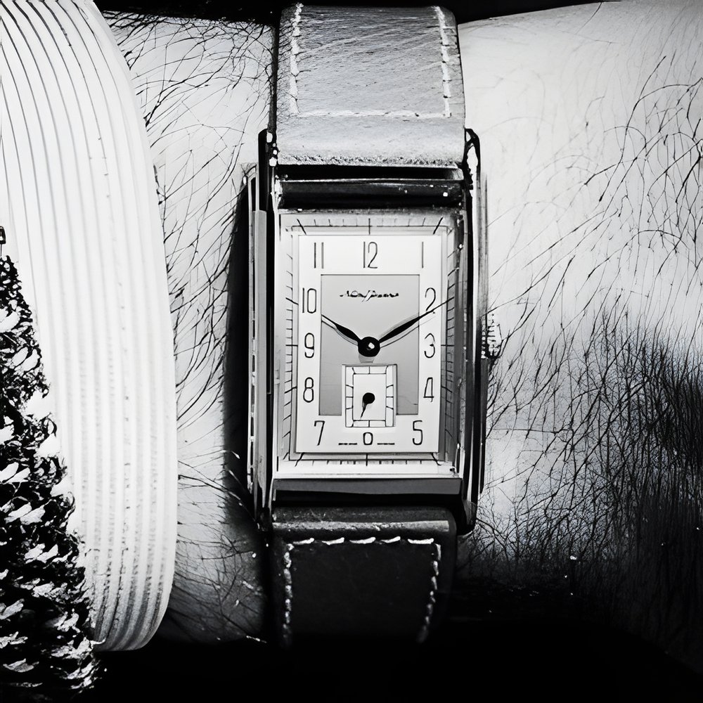 The style of the Thirties and the technology of the Eighties : this Numa Jeannin design was made with the original tooling of the period. It features a slim cambered rectangular case, a dial with colour zoning and Breguet chapters. Inside, a modern quartz movement with small seconds hand. Goldplate or chromed finish with steel back. Also available with mechanical movement. (NUMA JEANNIN)