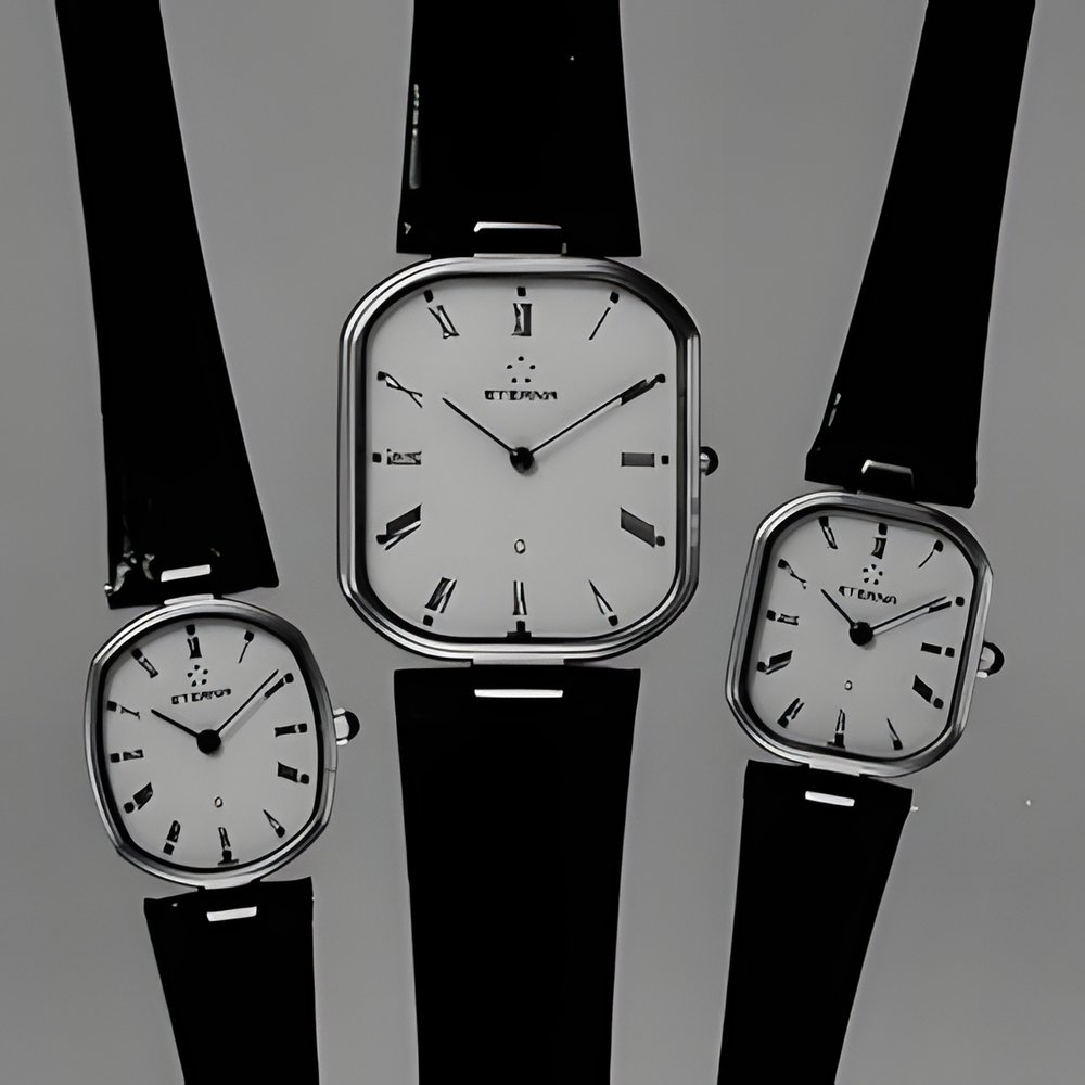 Advanced technology in haute couture dress : these ultra-slim, stylishly understated quartz watches feature a single, striking note of fancy : the expanse of gold between the case and the genuine alligator strap. With extra-resistant sapphire crystal. (ETERNA “St-Honoré”)