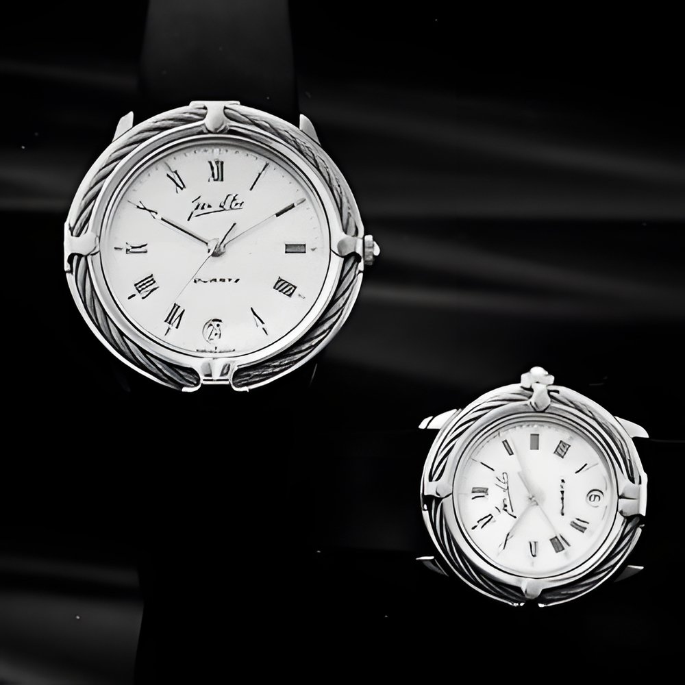 Featuring a torsaded bezel, these designs offer tested water-resistance to a depth of 50 m and feature both a screw-lock crown and a mineral crystal with a hardness of 1,200 on the Vickers scale. Adjustable strap in perfumed rubber with steel foldaway clasp. Quartz movement with centre seconds and date calendar. (“Jean d’Eve” by LE PHARE SULTANA SA)