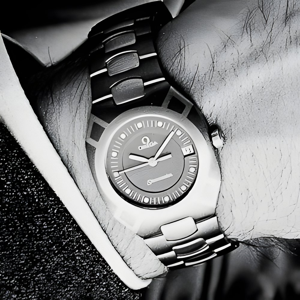 The impressive success enjoyed by these designs is keeping them in the news. The unexpected combination of metals, 18K pink gold and titanium, results in truly expressive timepieces. Cases waterresistant down to 120 m, screw-lock crowns, scratch-resistant glareproof sapphire crystals. Quartz movements. (OMEGA “Seamaster Titane”)