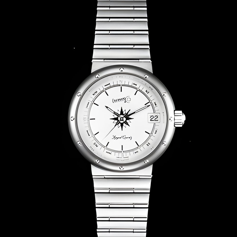 Introducing the “Windmaster” regatta watch from Eberhard. This is the successor model to the one designed for the crew of the “Azzurra” when it sailed in the last America’s Cup. Water-resistant down to 50 m, it features an all-steel case with twelve 14K gold studs. Two-tone bracelet with special patented clasp. (EBERHARD “Windmaster”)