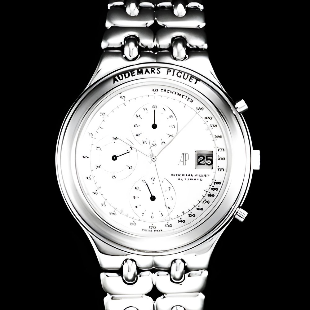 The Audemars Piguet seifwinding chronograph provides an exemplary demonstration of the ongoing mastery of mechanical horology at its finest. This design features a water-resistant case and a bracelet in 18K yellow gold. The movement’s rotor is made of 21K gold. (AUDEMARS PIGUET)