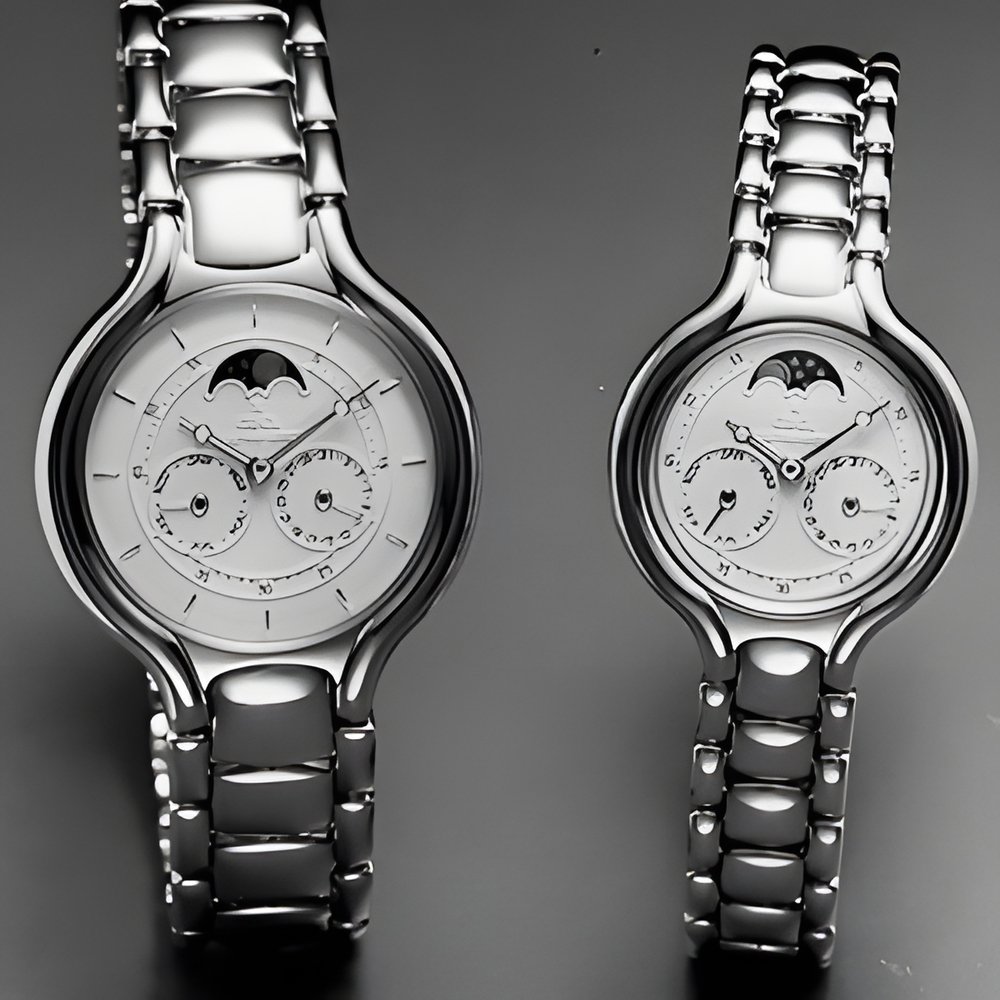 New entries in the “Beluga” line. After a man’s model with perpetual calendar, [bel now introduces a seifwinding “Beluga” model for women with date, month and moon-phase indications. Another version shows the date, day and month. Both designs automatically adjust for 30-day months and for February 28. Available with choice of leather strap or 18K gold Beluga bracelet. (EBEL “Beluga”)